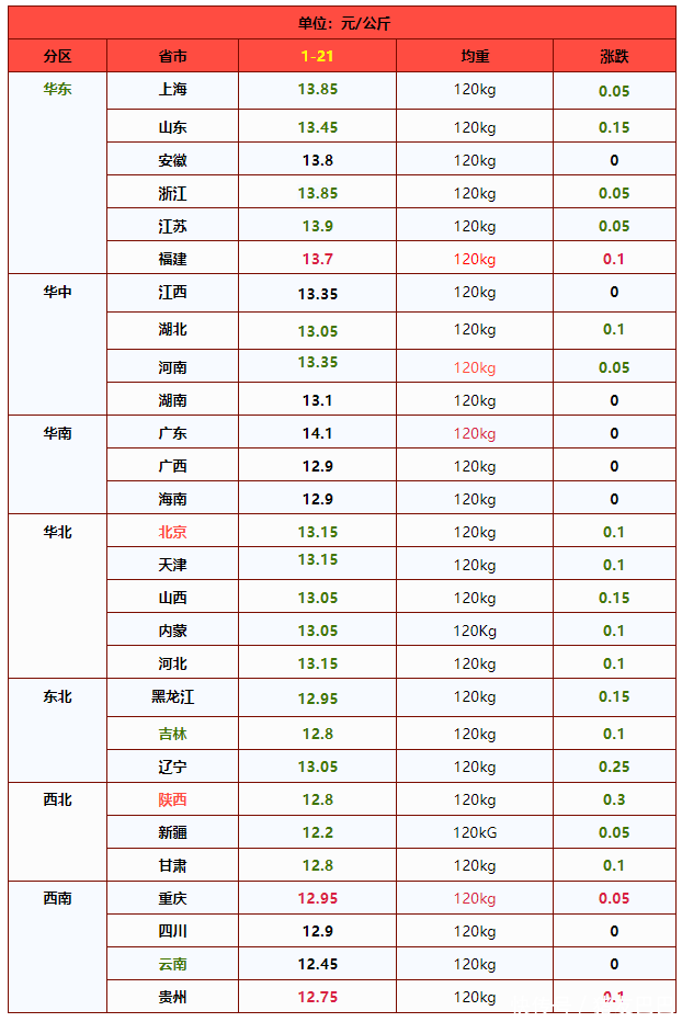 因此,基于供需博弈,市场呈现冲高回落走势,但是,由于季节性需求支撑尚存,多地物流运输受限,生猪出栏增量一般,猪价以震荡偏弱为主!预计,1月21日,外三元生猪报价在13.1元/公斤,下跌0.06元,南北地区,屠企报价以震荡下跌为主,后市关注购销节奏的变化!